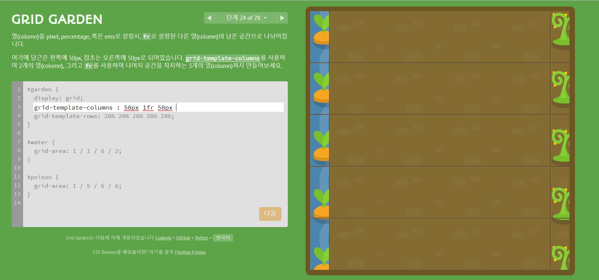 상현님이 올려주신 개구리 게임의 연장선으로 머장님이 또 올려주신 그리드 연습 게임을 했다.