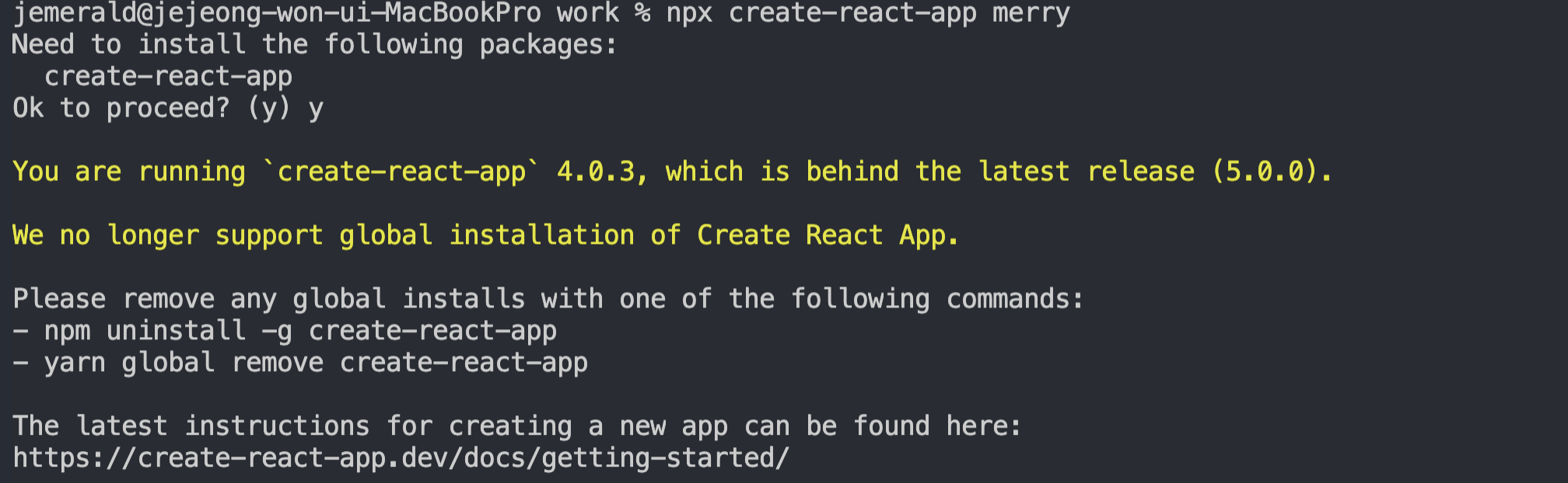 //1. 전역으로 지우고 2. 최신 버전으로 깔고 3. 리액트 프로젝트 생성