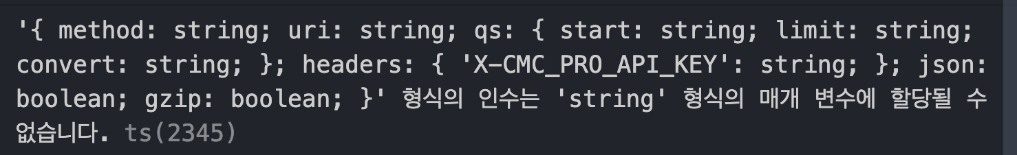 내가 객체 타입의 데이터를 매개변수로 넘겨줄 때 그 매개변수의 타입을 string으로 해놓고 넘겨주고 있어서 발생한 오류였다.