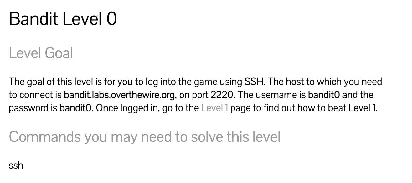 ssh bandit.labs.overthewire.org -p 2220 -l bandit0
