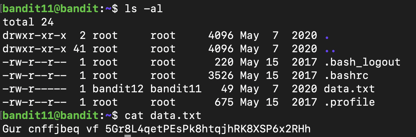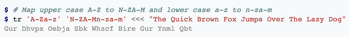 cat data.txt | tr 'A-Za-z' 'N-ZA-Mn-za-m'