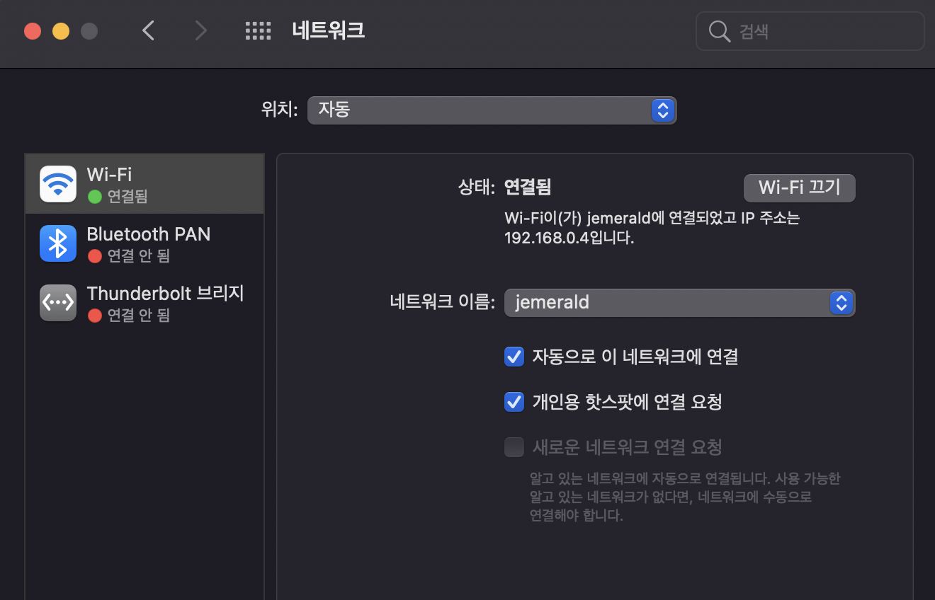 맥북에서 사용하고 있는 네트워크의 IP 주소를 다음과 같이 uri 주소에 입력한다.