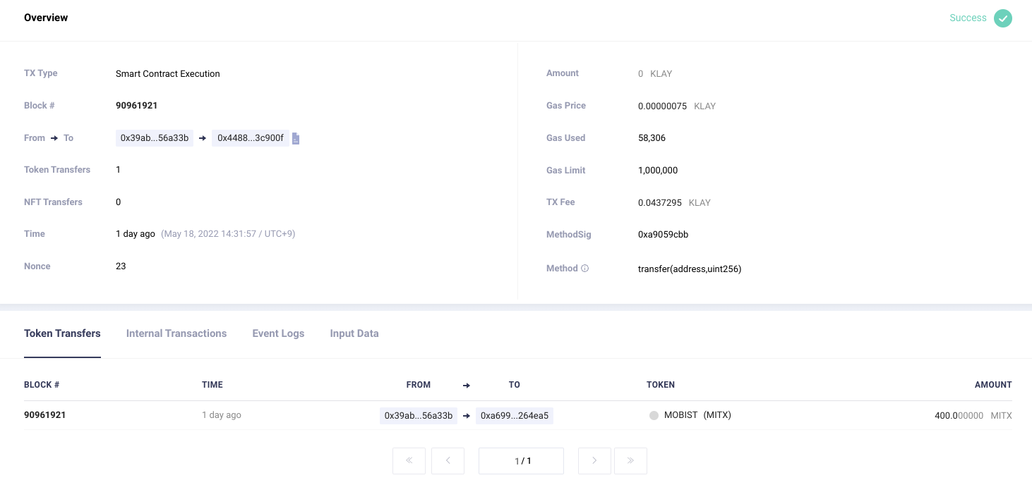 Method 가 안나옴. (정상 트랜잭션은 transfer)