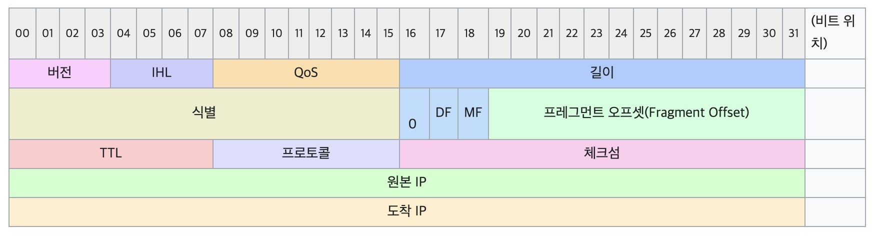 IP 패킷: 헤더와 페이로드로 구성