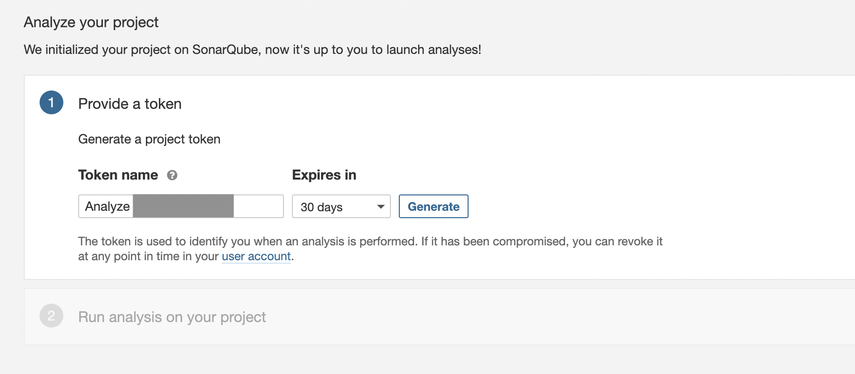 프로젝트를 분석할 스캐너에 대한 토큰을 발급받는 과정까지 진행하였다.