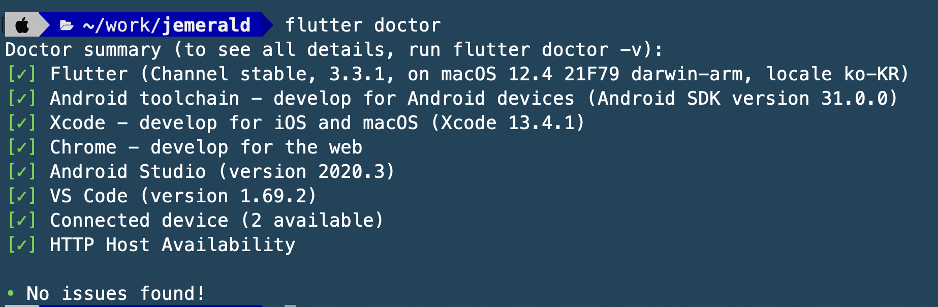 그리고 플러터 개발 환경이 모두 제대로 갖춰졌는지 확인해준다.