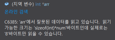 검색한 것 : 동적 배열 할당 int* arr = (int*)malloc(sizeof(int) * size);