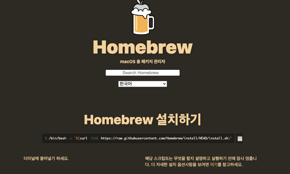 Homebrew 공식 페이지에서