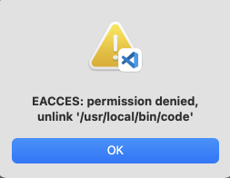 EACCES: permission denied, unlink 'usr/local/bin/code'